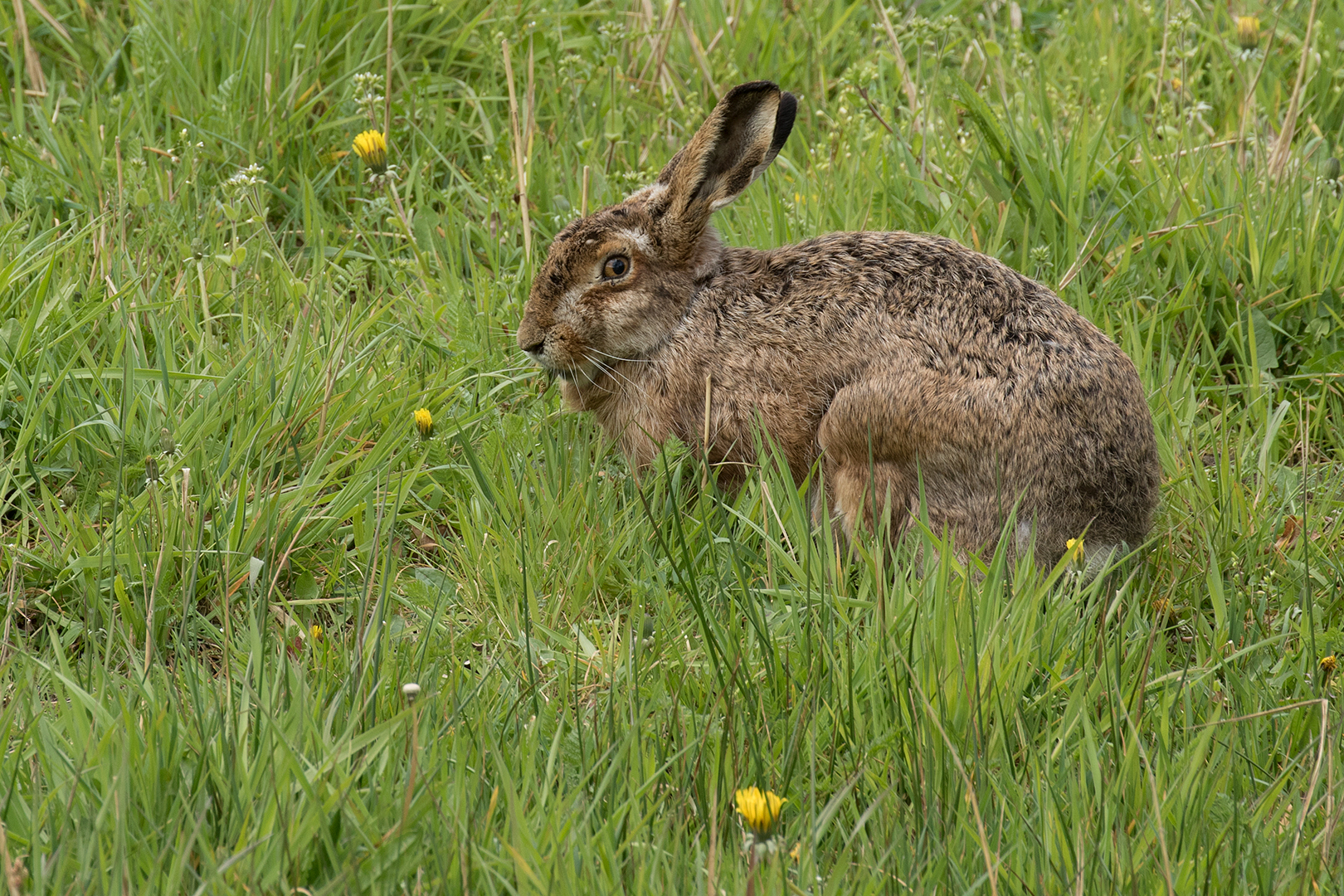 Haas fouragerend – Lepus europeus – European hare (a)