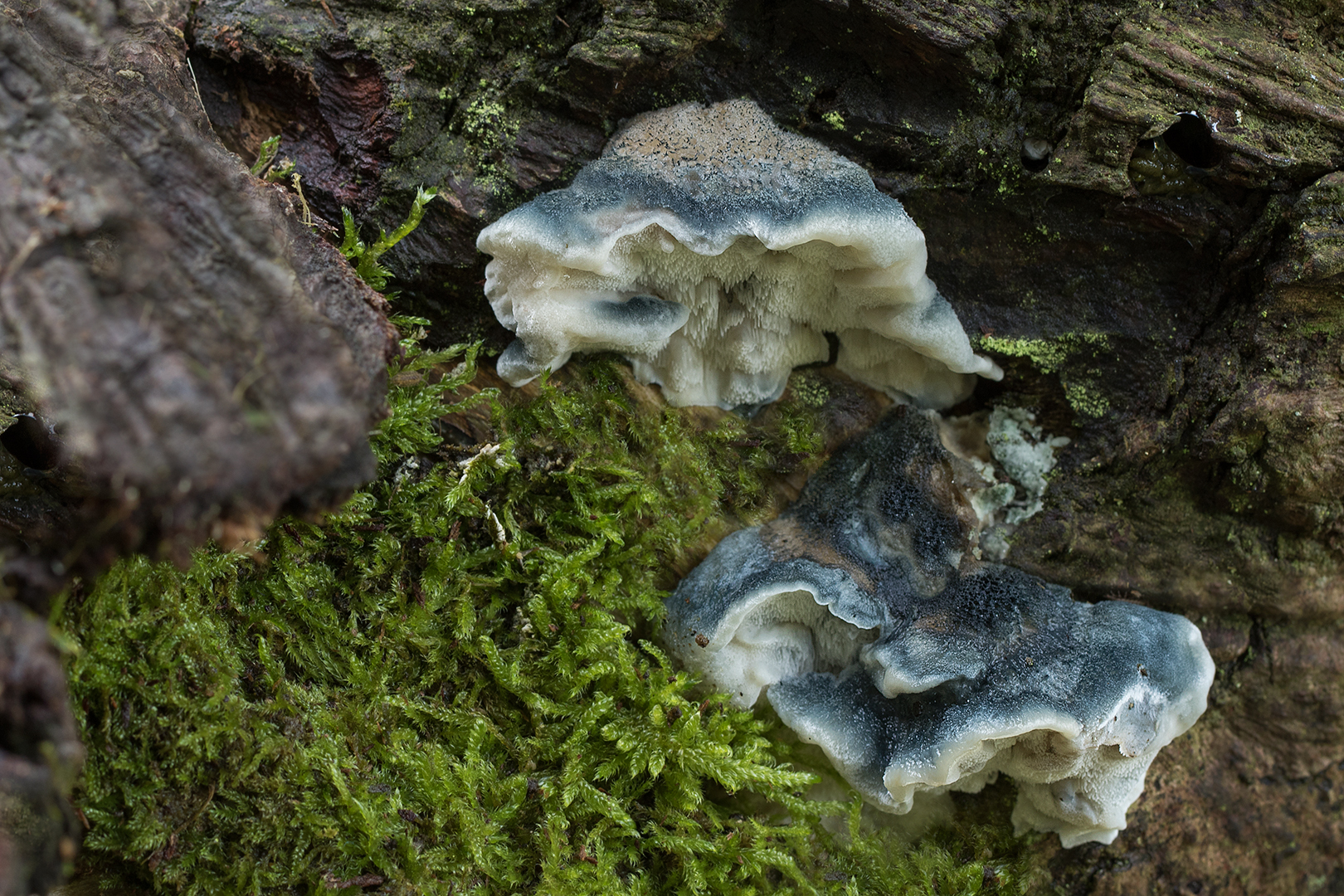 Blauwe kaaszwam – Postia caesia – Conifer blueing Bracket (a)