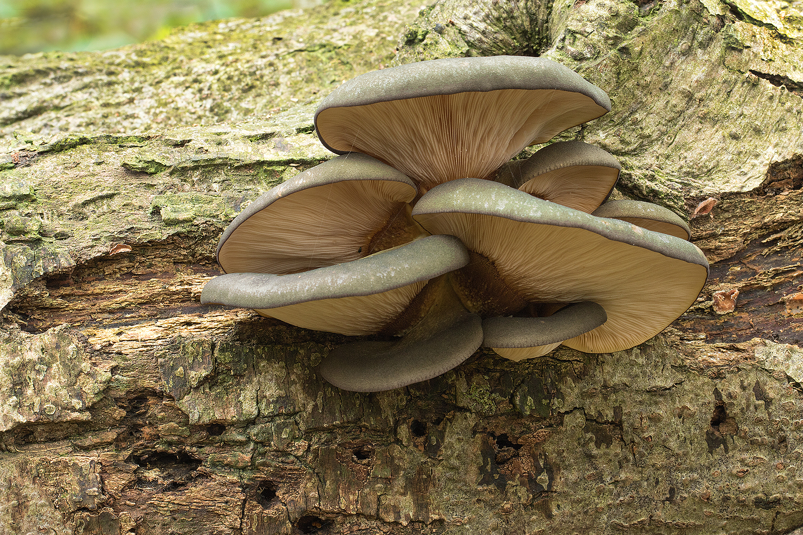 Groene schelpzwam -Panellus serotinus (a)