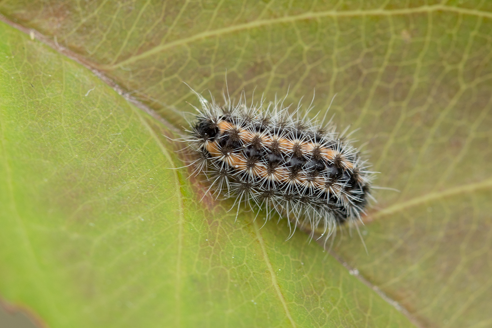 Bruine metaalvlinder rups – Rhagades pruni (a)