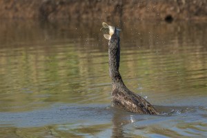 Aalscholver werkt snoek naar binnen – Phalacrocorax carbo (a)