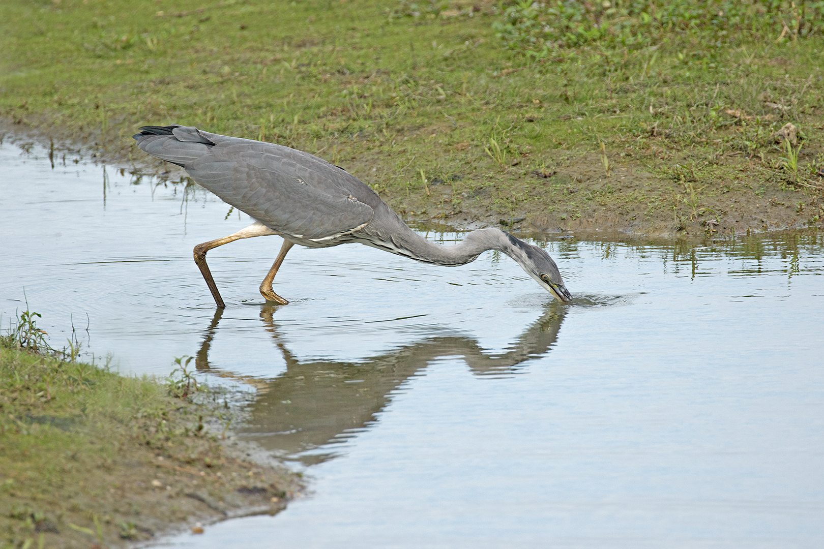 Blauwe reiger vissend – Ardea cinera – Grey Heron fishing (1)