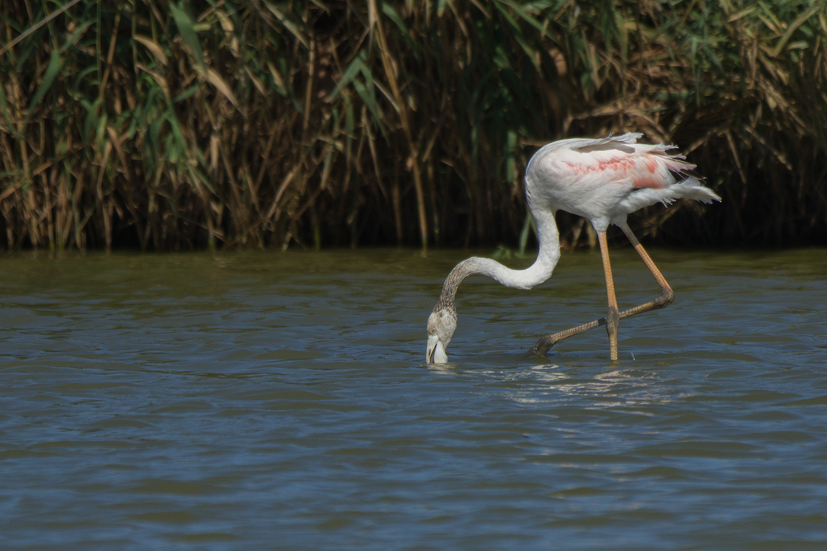Flamingo foeragerend – Phoenicopterus – Europian-backed Green Flamingo (a) Vind-ik-leuk Aan het laden...