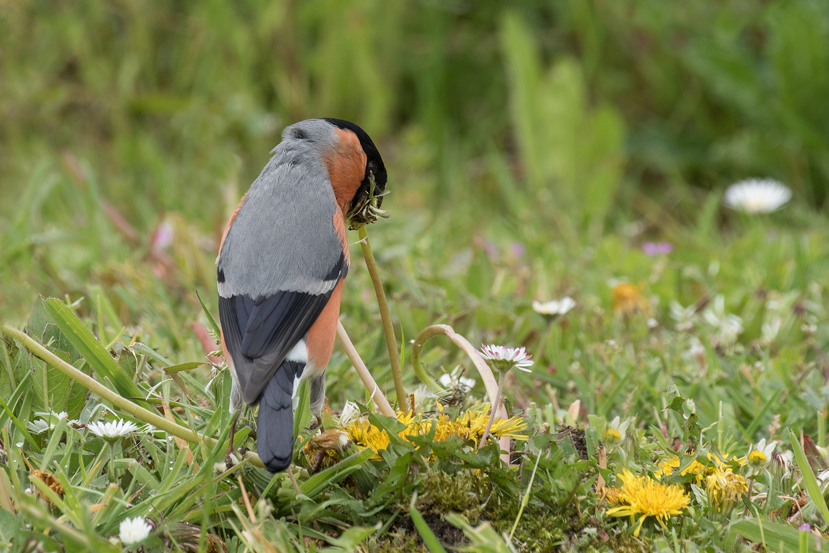 Goudvink man foeragerend – Pyrrhula pyrrhula – Eurasian bullfinch(b)